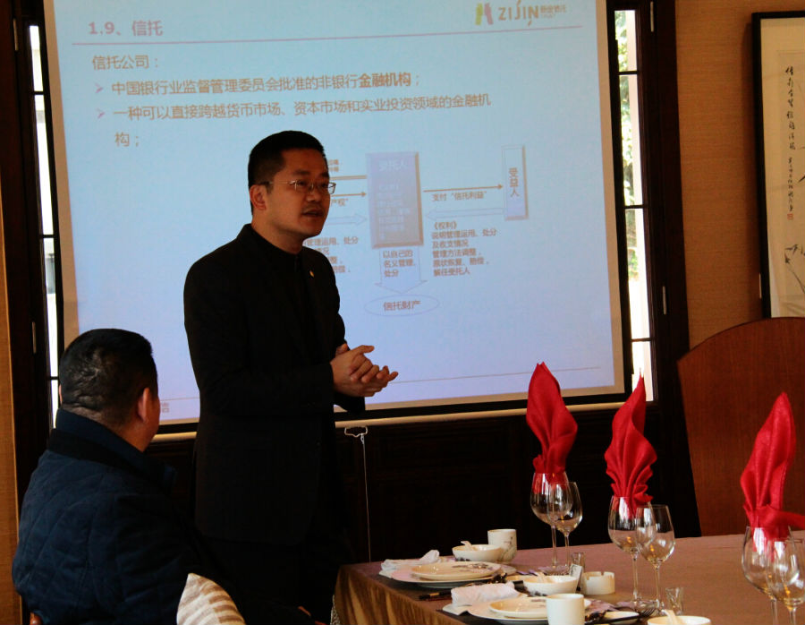 活动首先由紫金信托无锡团队总经理张荣先生致开场词,张总以诙谐幽默的方式介绍了紫金信托经营发展情况。