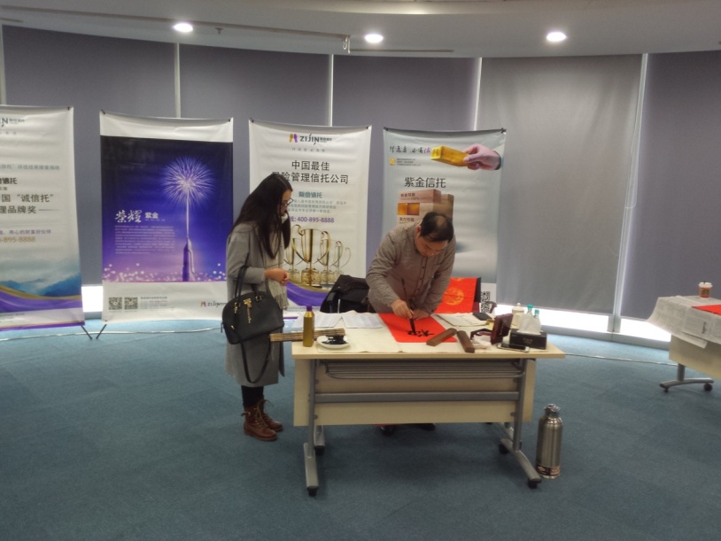 紫金信托组织此次“大师挥毫,迎新春联”活动,希望以手写春联的方式传递新年的祝福;精湛的书法作品,使客户和微友们愉悦身心、启迪智慧。公司借助此次活动的机会进一步增强了与客户之间的互动交流。客户在活动中感受到了中国书法的文化魅力,回味了传统的新年习俗,增添了春节的“年味”,享受到了传统文化习俗带来的快乐。