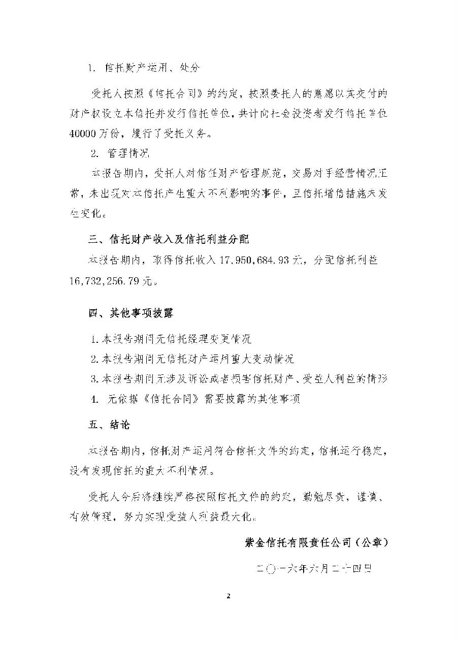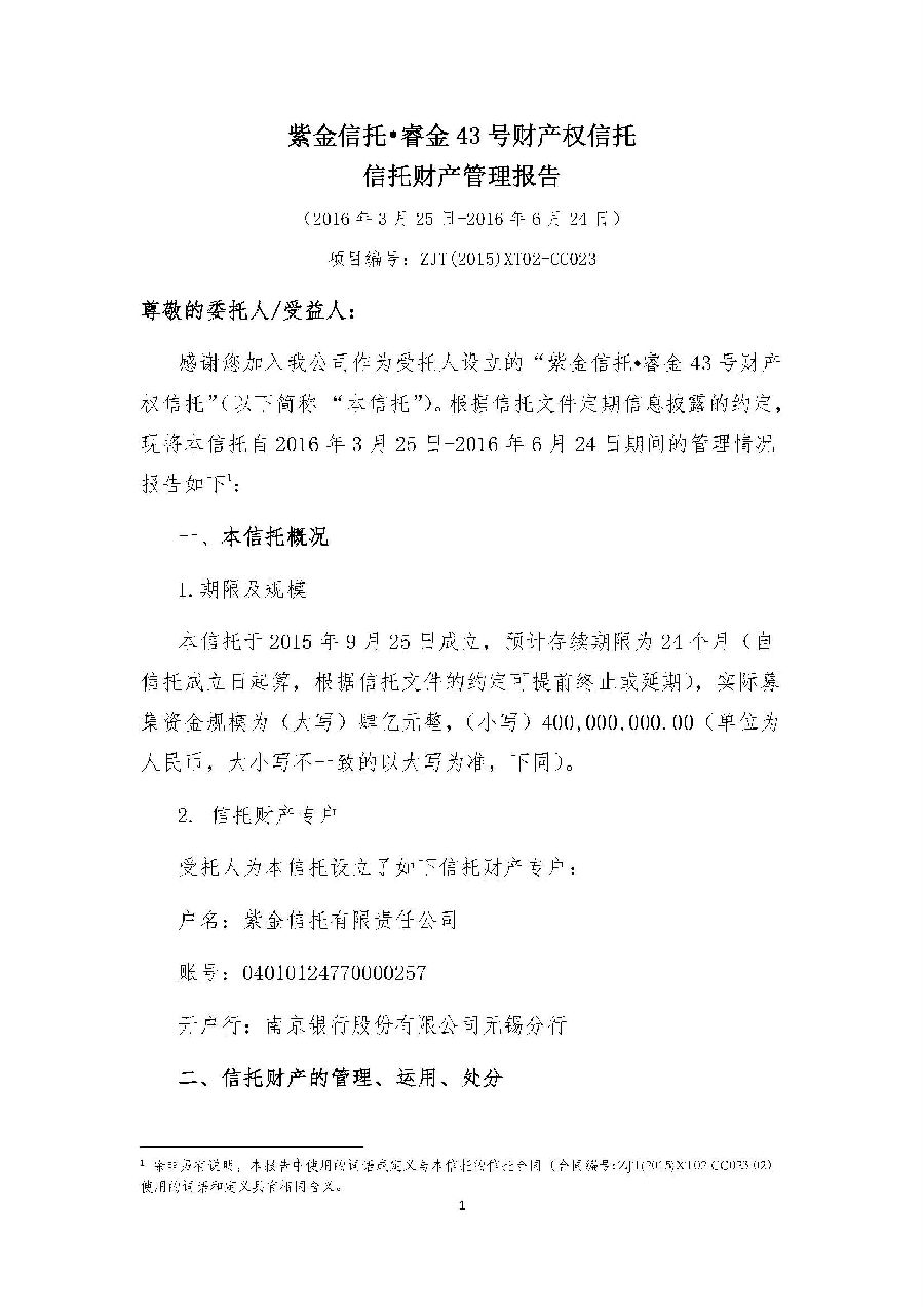 紫金信托-睿金43号财产权信托信托财产管理报告