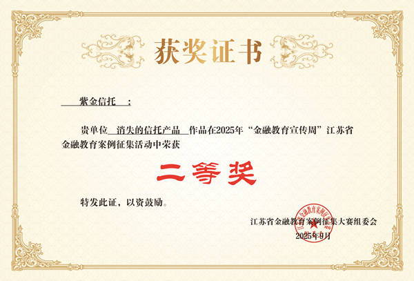 近日,在由国家金融监督管理总局江苏监管局等指导开展的“2025年江苏省金融教育案例征集大赛”中,紫金信托原创消保宣传片《消失的信托产品》荣获二等奖。